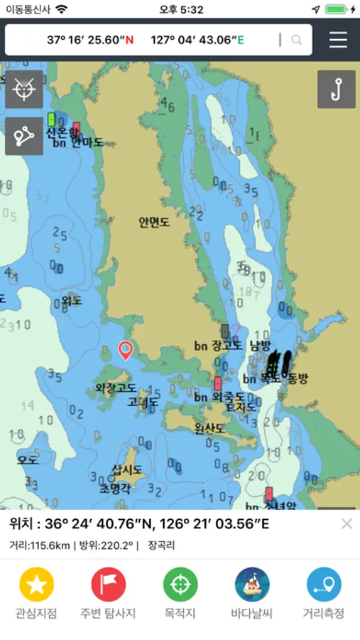 인공어초, 침선, 암초, 자연초 등 8천건 이상의 바다 낚시 포인트 정보 제공
