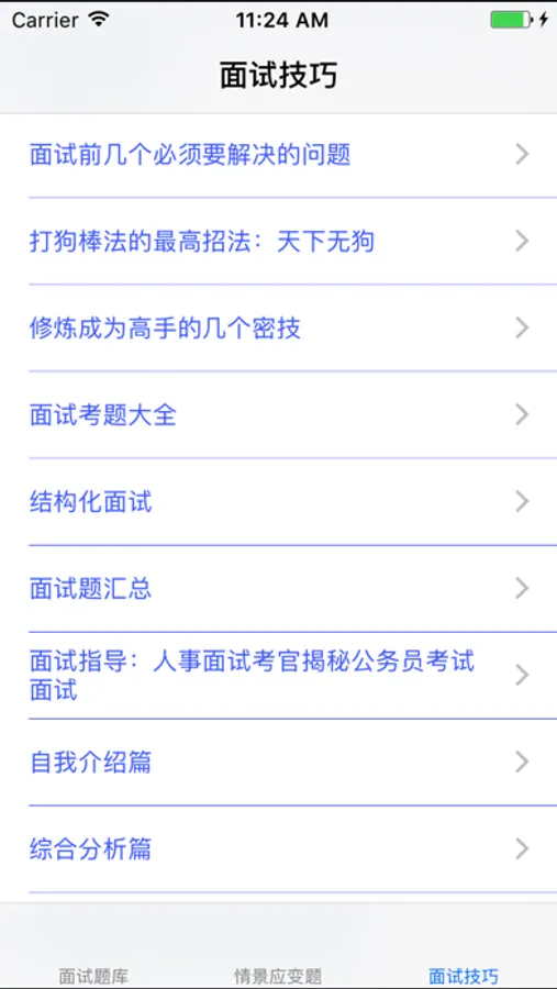 本软件为事业单位面试考试题库的软件,精心准备了最新考试模拟题库(共计2500多道)。试题类型包括综合分析题、自我认知题、人际关系题、情景应变题、组织管理题、