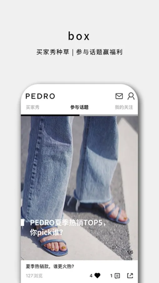 PEDRO APP致力于为您提供更好的购物体验,寻找更多新鲜的潮流灵感。您可以在线按照性别浏览并选购心仪商品,涵盖鞋履、包袋、配饰几大类。同时可获得PEDRO的最新动态、Lookbook和趋势主题以及更多每周上新内容。