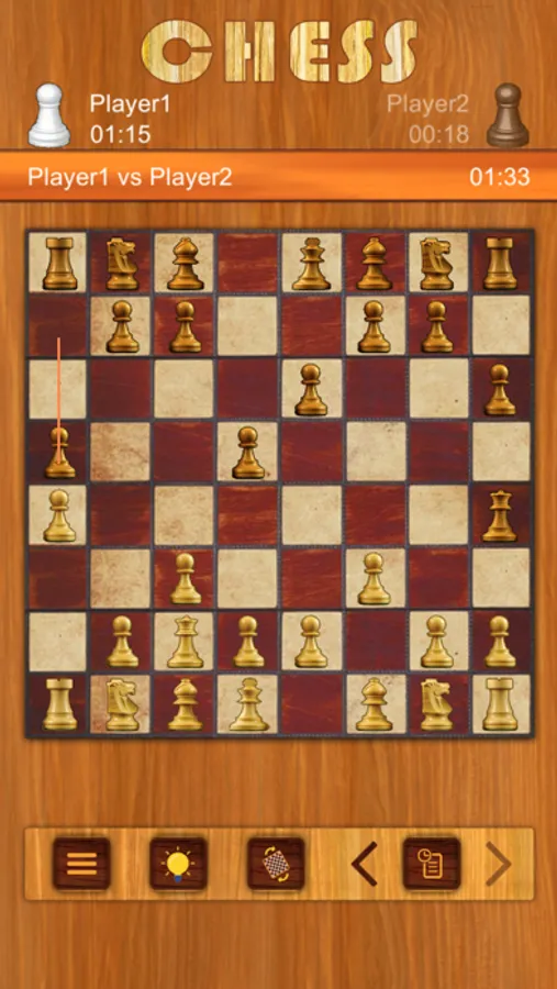 Chess is a board game for two players. It is played on a square board, made of 64 smaller squares, with eight squares on each side. Each player starts with sixteen pieces: eight pawns, two knights, two bishops, two rooks, one queen and one king. The goal of the game is for each player to try and checkmate the king of the opponent. Checkmate is a threat ('check') to the opposing king which no move can stop. It ends the game.