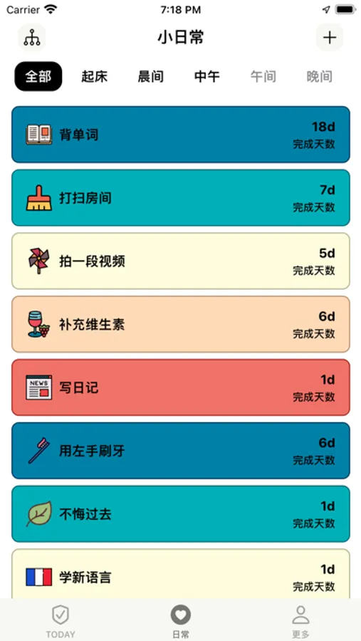 Habits will be clearly distributed among different time sections of a day so you can find them easily.