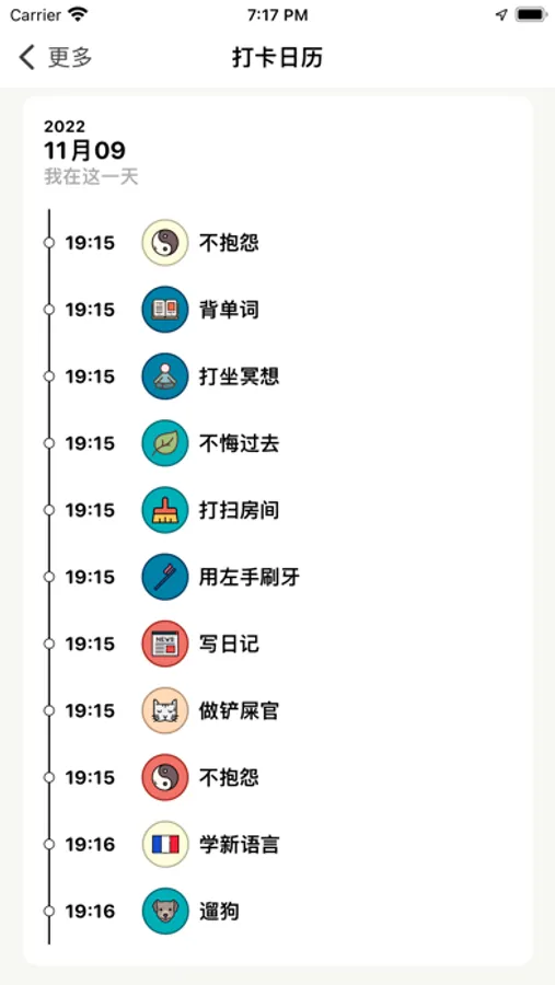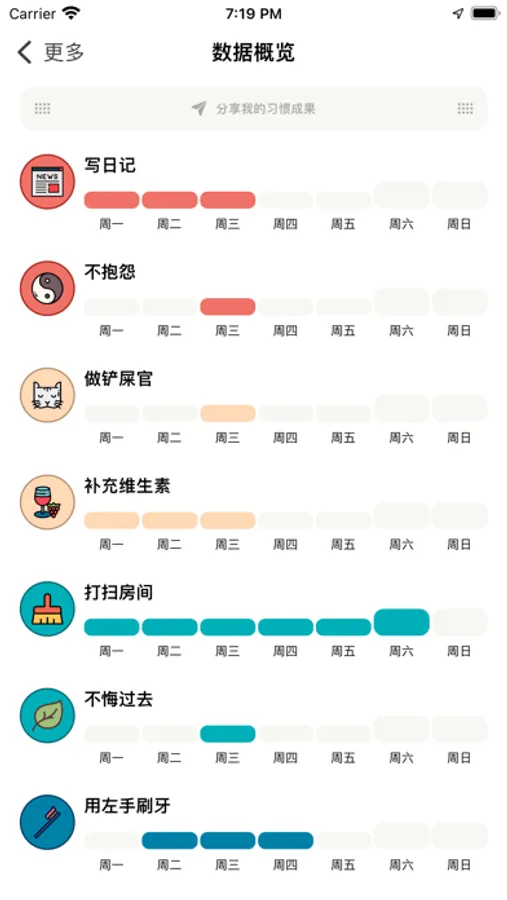 Habits scheduled for today will be displayed on the homepage. Just tap a habit to mark it finished and the habit icon will be colored to show that.