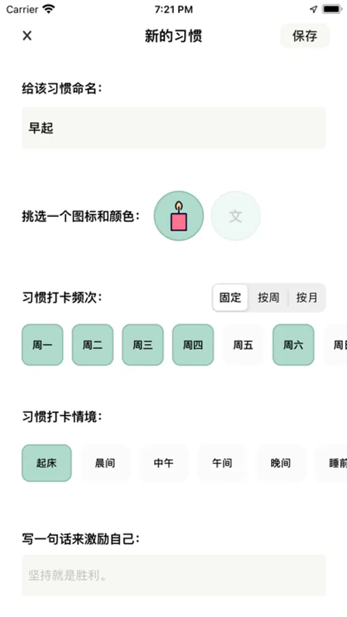 ShineDay is a simple and very easy-to-use habit tracking app. Just build your habit list, and assign each habit to the days of the week.