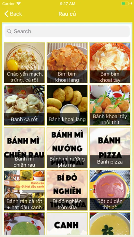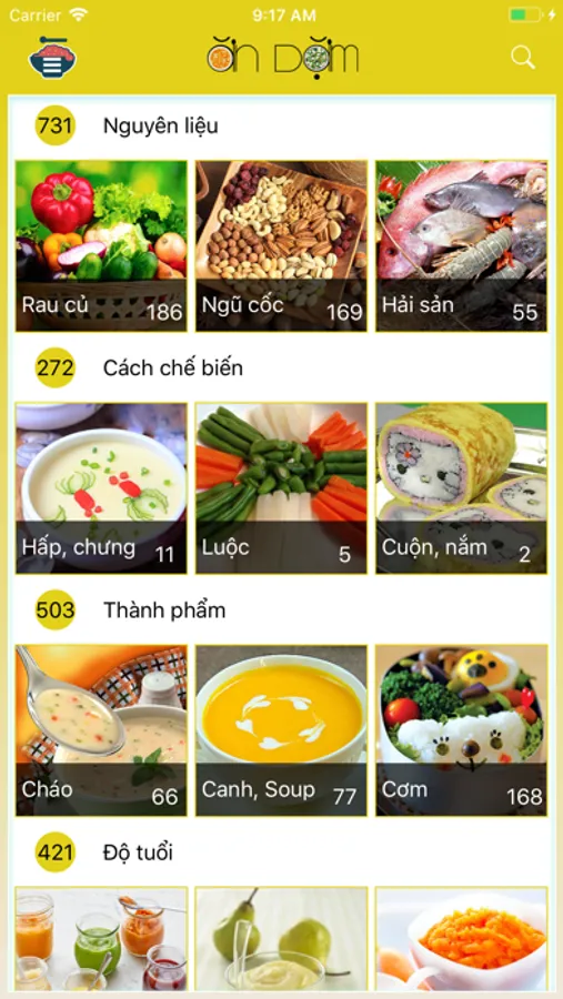 Ứng dụng Ăn dặm gồm có các mục chính: