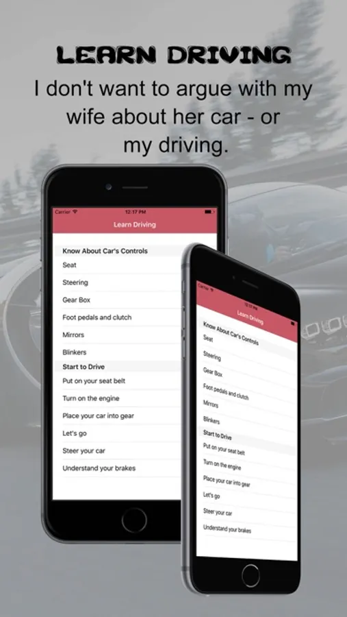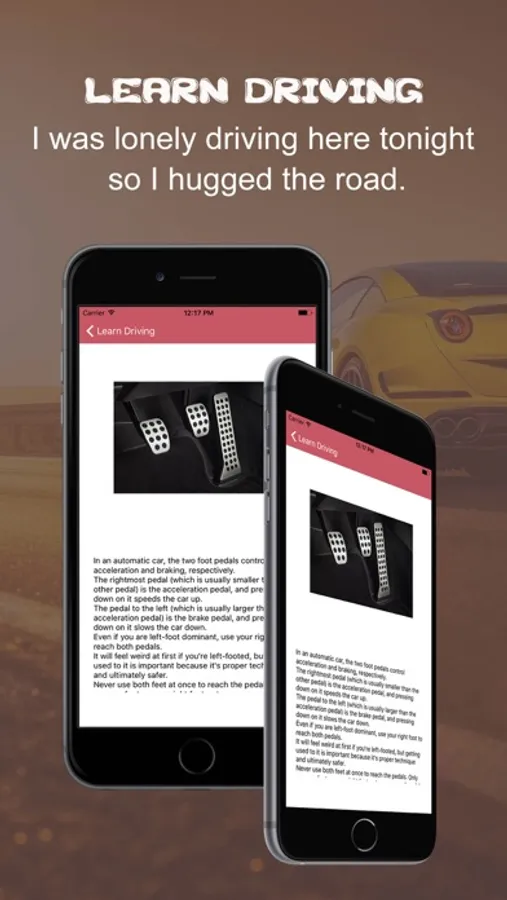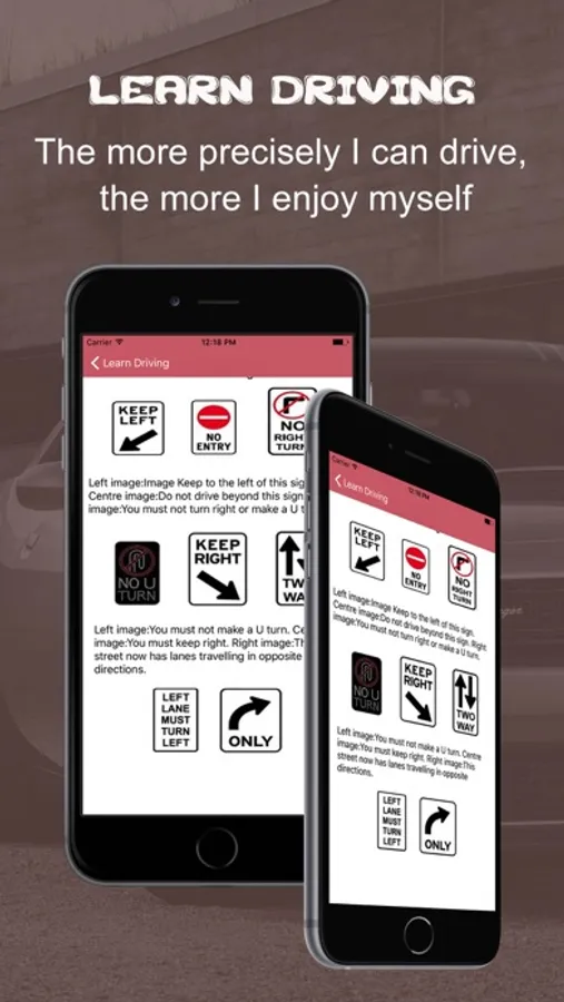 Using our driving app you will learn about: