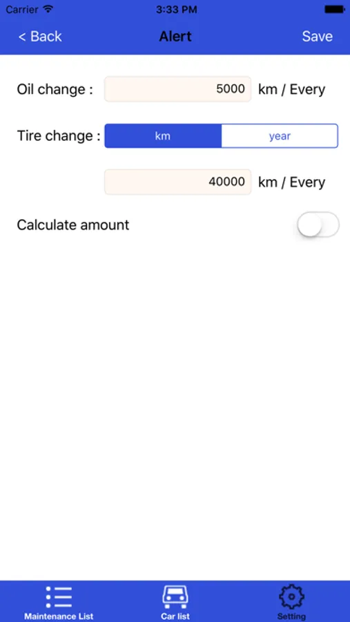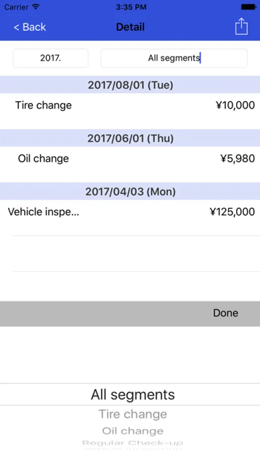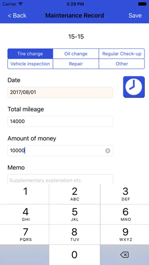 - There are six maintenance items: “Oil Change”, “Tire Change”, “Repair”, “Regular Check-up” and “Automobile Inspection” and “Other”.