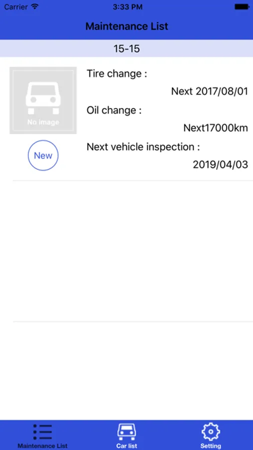 This app controls the timing of things such as automobile inspection, oil change, tire change and gives an alert when each timing is approaching.
