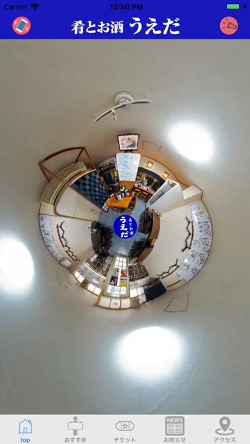 360度パノラマ画像でのお店の内観の閲覧や、お店へのアクセスなどの店舗情報の確認、またお得な情報などの最新のお知らせを確認することができるアプリケーションです。