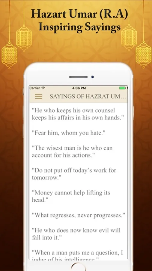 Hazrat Umar (R.A) Real Biography is an iOS Application which is designed to educate the Muslims with the life, teachings and sayings of Caliph Omar. App is designed with the purpose of providing all the needed information on the life of second Caliph of Islam, i.e. Hazrat Umar Ibn Al-khattab (RA).