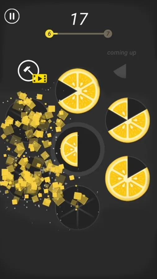 Tap in one of the outer circles to place the current slice. Complete a circle to blow it up along with adjacent circles. Complete levels to play with new slices!