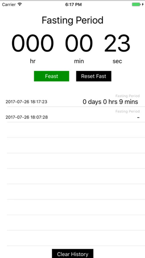 This app only has 3 buttons. The Feast button in green is the one that should be used most often. Whenever you eat, just click this button. It will store the date time of your meal. Then the fasting timer will start. The next time you eat, click on the Feast button again.