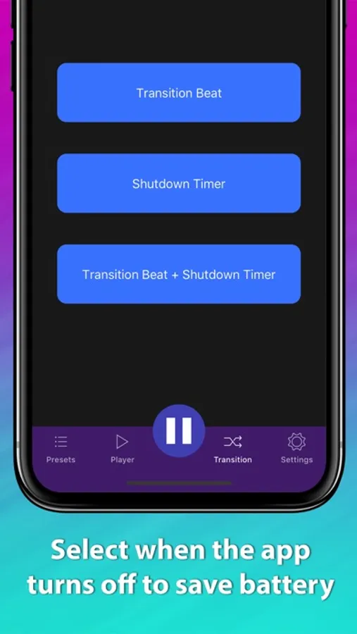 • Transition between two selected binaural beats