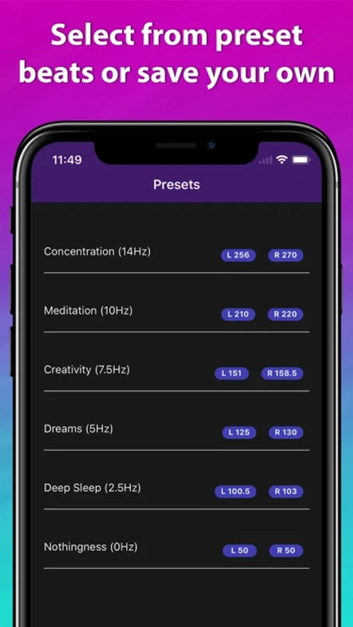 • Generate your own unique binaural beats