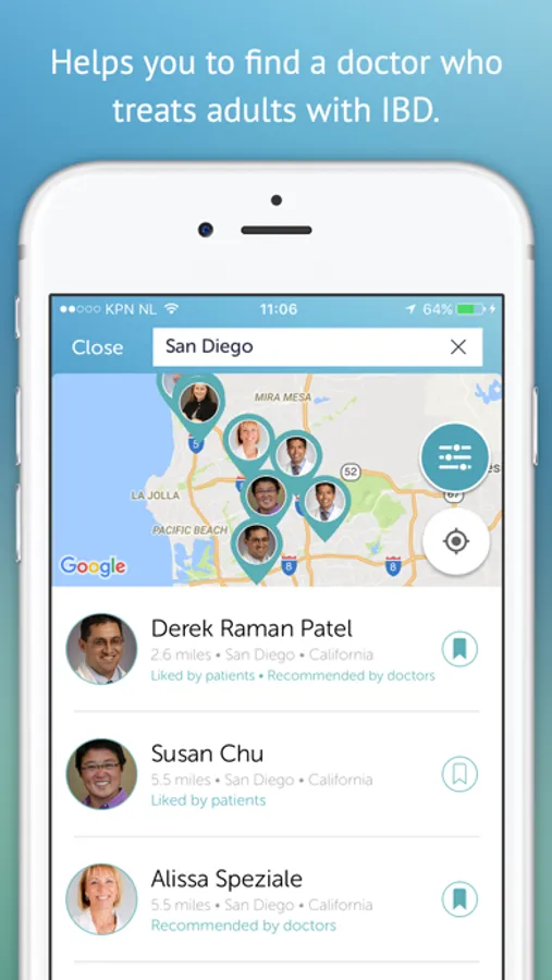 The database of GI practitioners who are listed in the app represent all 50 US states.