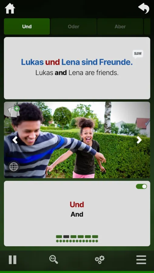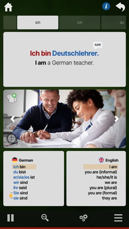 Ouino German is the all-in-one complete solution to learn German fast. The program now includes over 450 lessons, 60 shorts stories, several pronunciation exercises and over 1300 engaging games and challenges. It is the most customizable German learning program. Each lesson has useful and easy to use options that allow you to take control over your learning. Options include setting the amount of time between examples and controlling the pronunciation playback speed. Become proficient and confident in German.