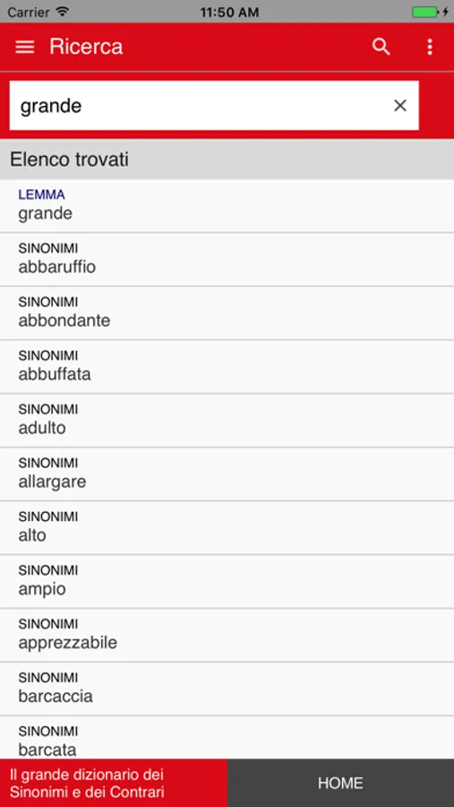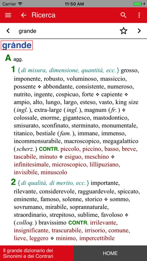• attraverso la ricerca contestuale — basta tenere il dito su una parola all’interno di una voce per andare alla sua definizione