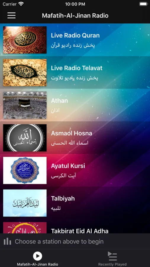 Mafatih-Al-Jinan Radio is a collection of Mafatih-Al-Jinan's Doas in audio format along with Arabic text.