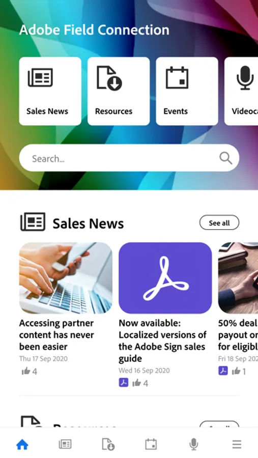 Meet Adobe Field Connection! The latest, easy to use, mobile app designed with our sellers in mind. Prompting users to quickly connect with the latest sales content and events as soon as they’re ready and helping sellers close business faster, against in-quarter targets. Adobe Field Connection proactively notifies you of the most current sales news, promotions, tools, resources and training events you can’t miss, you have all you need at your fingertips.