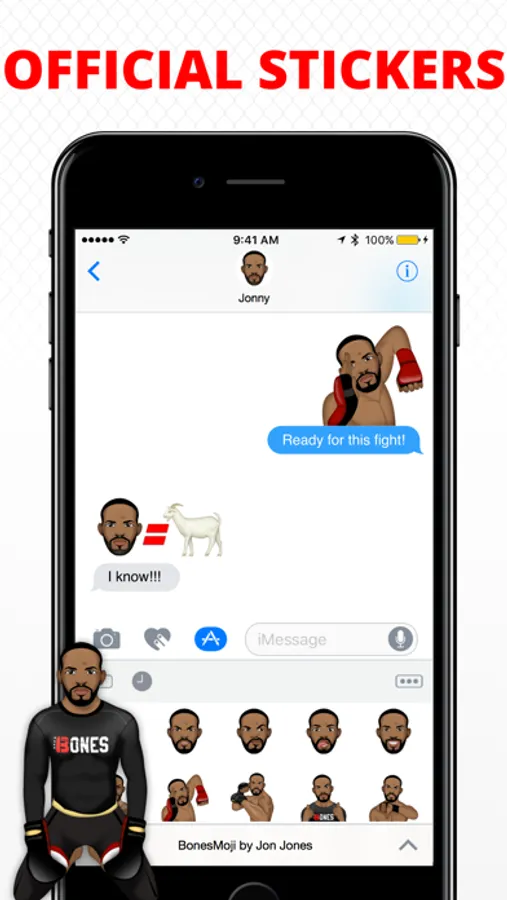 Presenting the official BonesMoji app by Jon "Bones" Jones just in-time for the big fight! Choose from dozens of official emojis personally curated by the champ himself.