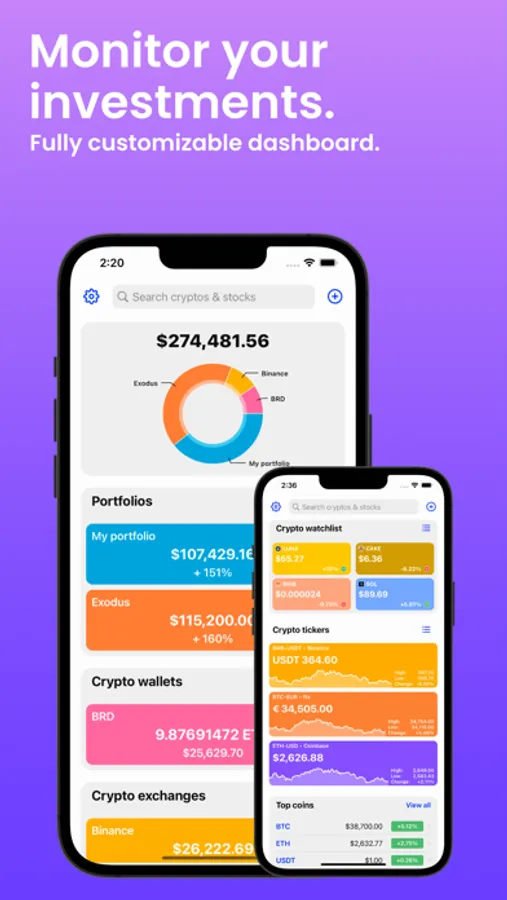 • WATCHLIST: Create your own watchlist, follow multiple cryptos and stocks, get information about each of them
