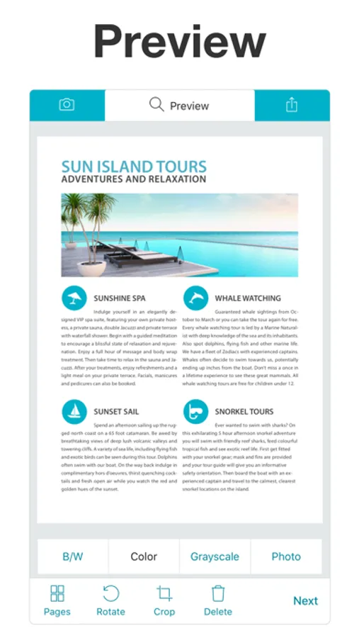 Scan photos as Black & White, Colour, Grayscale or Original Photo. Scan App + uses the latest mobile scanning technology to create high quality scans. Control the file size with large, medium and small options.