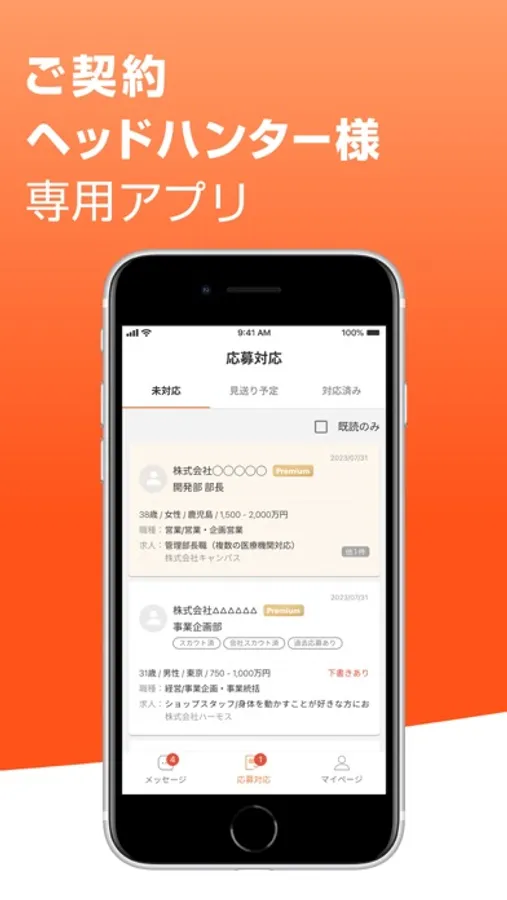 ハイクラス層向け転職サイト ビズリーチのヘッドハンター専用アプリです。