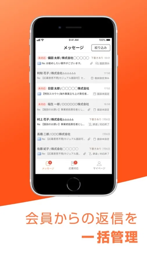 外出先や移動中でも、より早く、より簡単に候補者とのやり取りが出来ます。