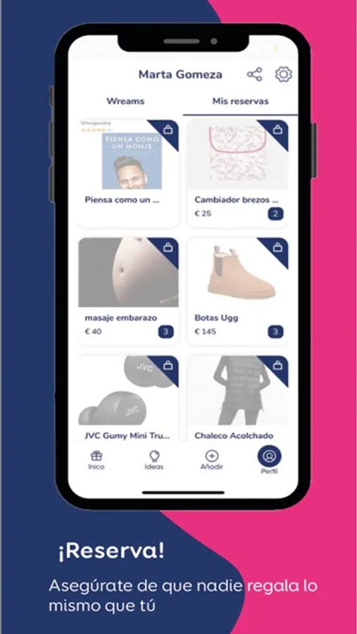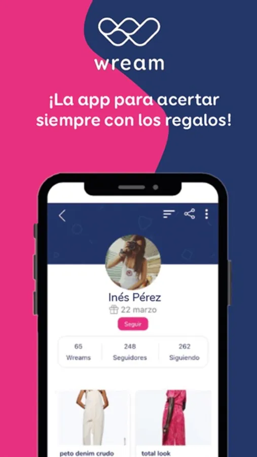 Wream is the app to always hit with the gifts (birthday, anniversary, Christmas…). Upload a photo of everything you would like to receive (clothes, concert tickets, sports, a car, any dream) post it on your profile and soon you will be enjoying it! Follow your friends and family to see what products they have uploaded, save them and you will not have to waste time thinking about what to give, with Wream you will make the perfect gift. Join our community!
