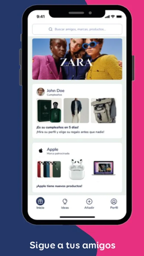 - Be up to date on the important dates of your friends and family, and see in their profiles everything they would like to have.