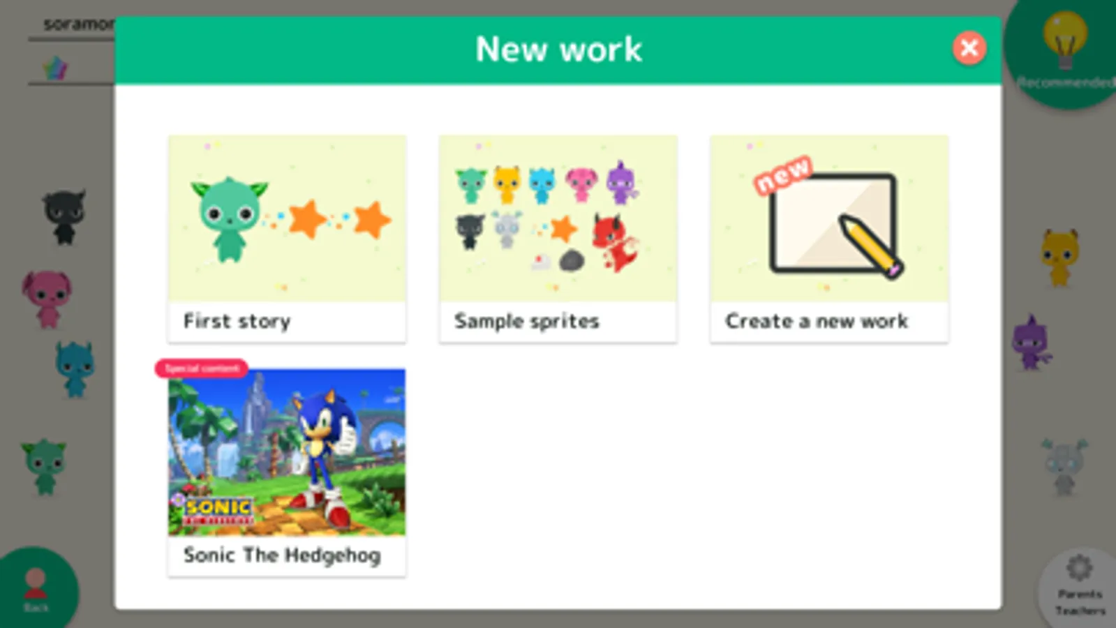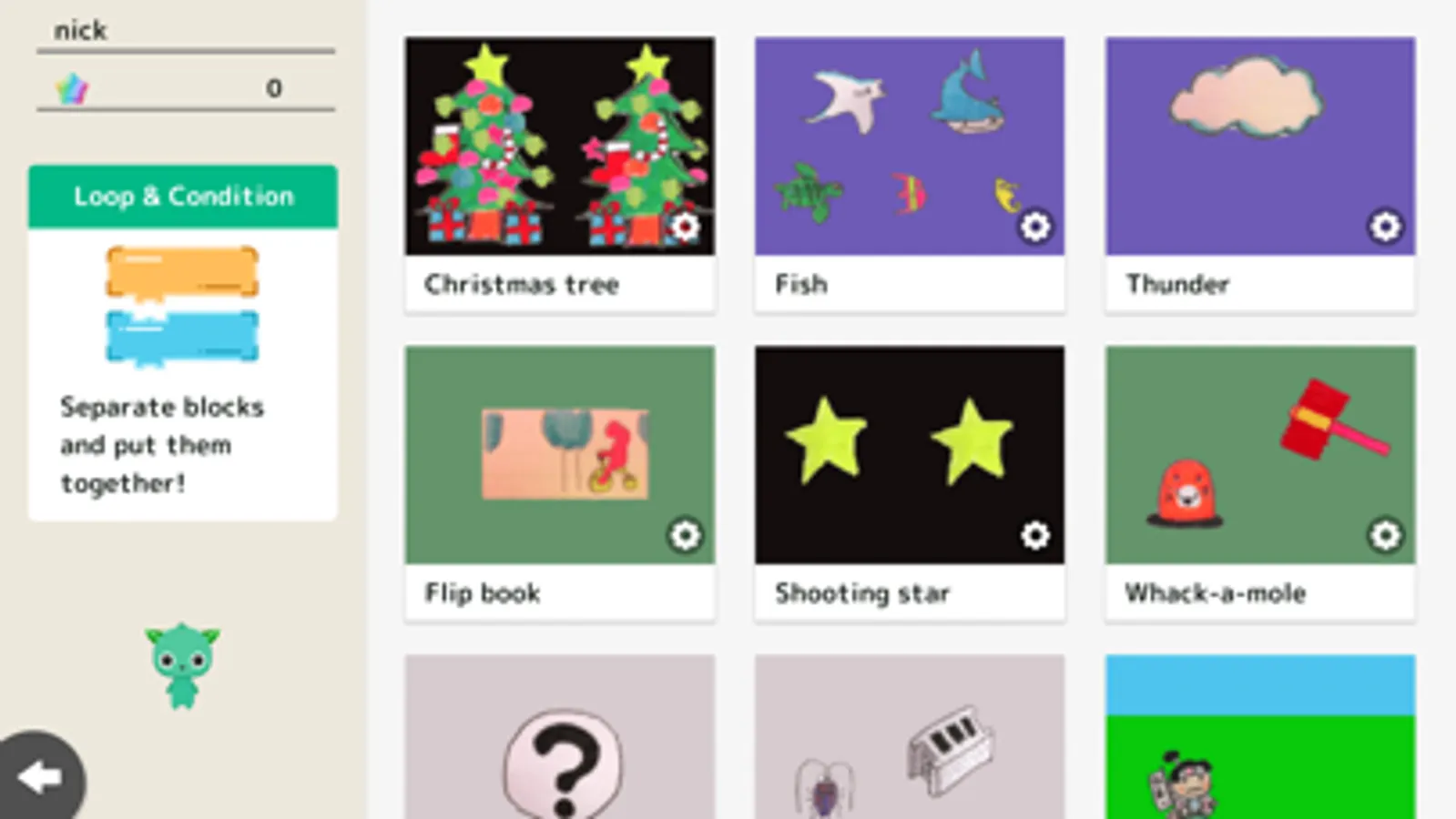 - Gallery of works shared by others. Children can look at the examples of others when creating their own programs.