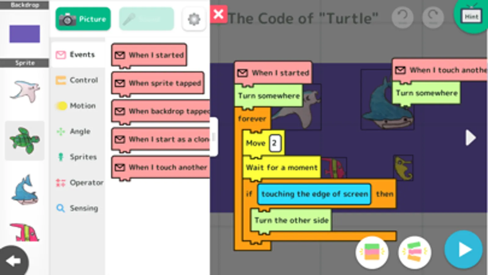 - Child-friendly interface that allows even young elementary schoolers to easily learn programming skills