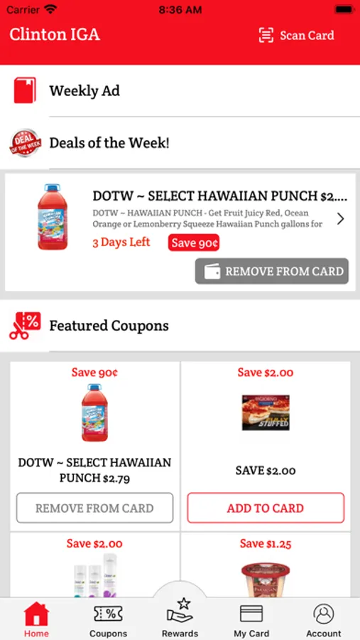Claim as many coupons as you want with one simple scan! No more searching through mailers or printing out emails. Clinton IGA is bringing rewards right to your mobile device!