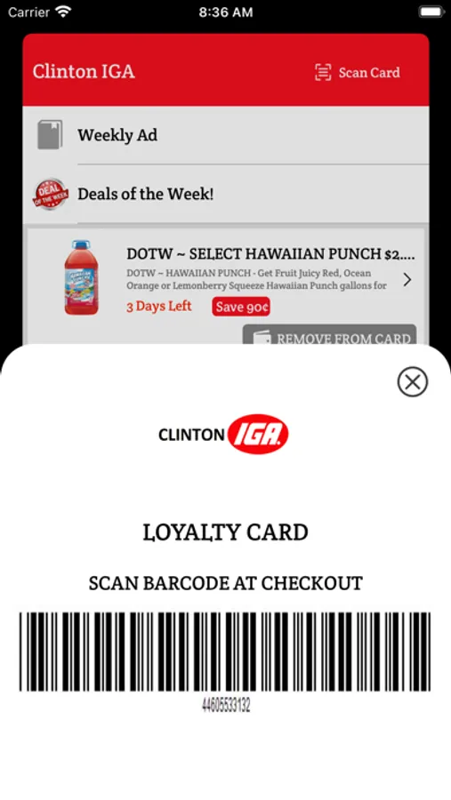 The Clinton IGA Rewards app is the best way for our loyal shoppers to receive savings every time they come in to the store! It's as simple 1, 2, 3: