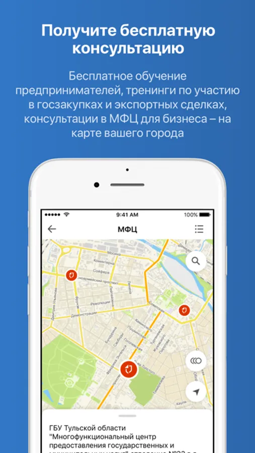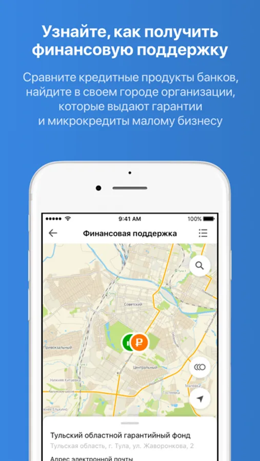 Льготные кредиты, коворкинги и технопарки с выгодными условиями, бесплатные программы обучения - в приложении собрана информация об организациях, поддерживающих малый бизнес в Вашем городе.