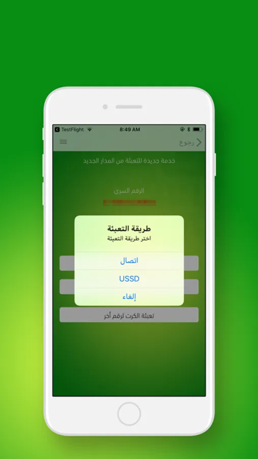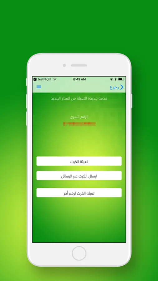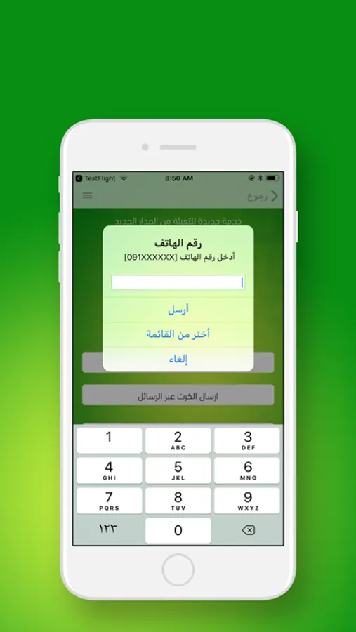 - ارسال بطاقة التعبئة عبر الرسائل الي (صديق - احد افراد عائلتك).