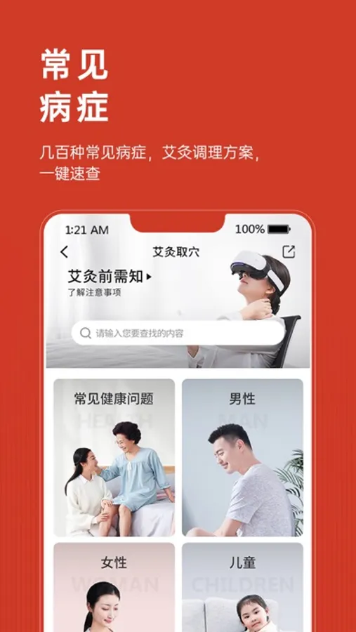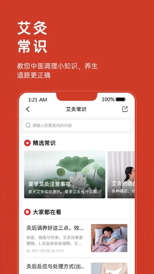 艾益生是一款家庭艾灸保健速查的应用。病症艾灸调理方案,帮助用户解决常见病不知灸哪里的问题;人体腧穴定位及简易取穴视频,解决普通人艾灸不知如何找穴的问题;创建艾灸计划,帮助用户实现个人与家庭的健康管理;更有中医养生课程及饮食、睡眠、运动等健康好文推荐。