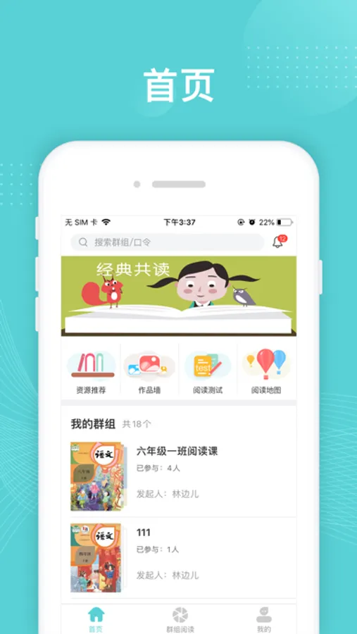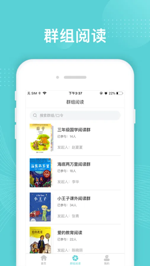 相较于一般的阅读工具,本软件更强调以群组的方式进行阅读活动。以群组为单位进行活动,“群主”可以发布活动题目,群组内成员将会完成题目,并进行作品共享有助于读者相互之间的交流和促进。