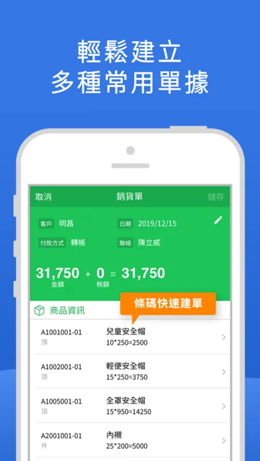 2.可建立報價單、訂單、進銷貨單。