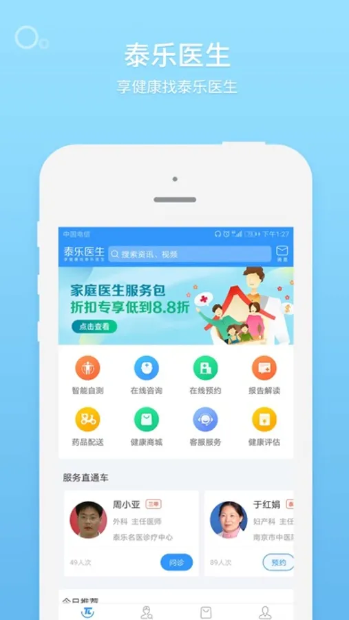 优享家医APP是以家庭健康为管理目标,以家庭医生为服务对象的区域家庭医生服务管理平台。平台整合三甲医院、专科医院、社区卫生服务中心、妇保所、养老院、护理院¬等医疗资源,打造集医疗、养老、保险三位一体的服务模式,实现全人群、全龄段、全程化的一站式家庭健康管理服务。平台根据用户需求,针对性提供各个医疗机构独有的定制化家庭健康管理服务包,包括专业的家庭健康在线咨询、健康宣教、技能培训及社区及三甲医院健康咨询、预约挂号、远程会诊、阶段性健康评估、慢病干预、术后上门康复护理等服务。