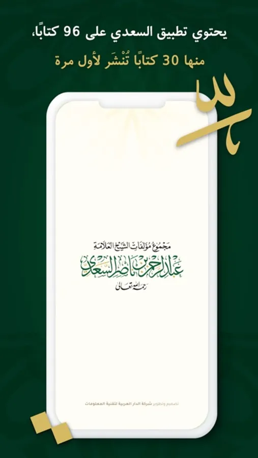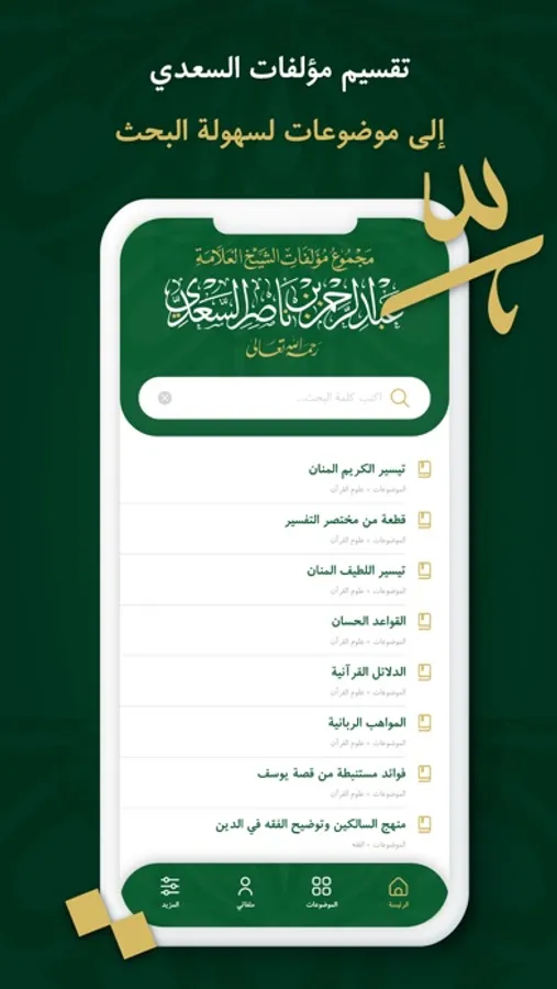 تطبيق مؤلفات السعدي .. مجموعة مؤلفات الشيخ العلامة عبد الرحمن بن ناصر السعدي – رحمه الله – يتضمن مجموع مؤلفات الشيخ السعدي في موضوعات علوم القرآن الكريم، وأشهرها تفسيره «تيسير الكريم الرحمن في تفسير كلام المنان» والمشهور بـ«تفسير السعدي»، كما يضم التطبيق مؤلفات الشيخ السعدي في الحديث الشريف، والفقه، والعقائد، والآداب الشرعية، والأخلاق في الإسلام، والفتاوى الشرعية، وما قدَّمه الشيخ في حياته؛ من دروس في الفقه المقارن، ومراسلات، ومقالات، بالإضافة إلى الخطب والمؤلفات في الفقه وأصوله.