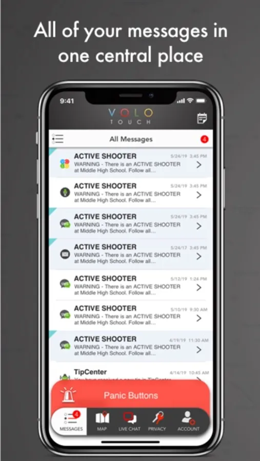VOLO Touch is the mobile companion app of the VOLO ASAP system. The ASAP suite of tools gives users a variety of powerful features including panic buttons that can be configured to contact any number of people through various communication formats such as voice calls, SMS text, email, and push notifications. VOLO Touch offers real-time situational awareness during emergencies by displaying user locations coupled with moment to moment safety status check in alerts. Additionally, users can communicate with each other through live chat and multiple outbound mass notification tools within that are integrated directly into the mobile app.