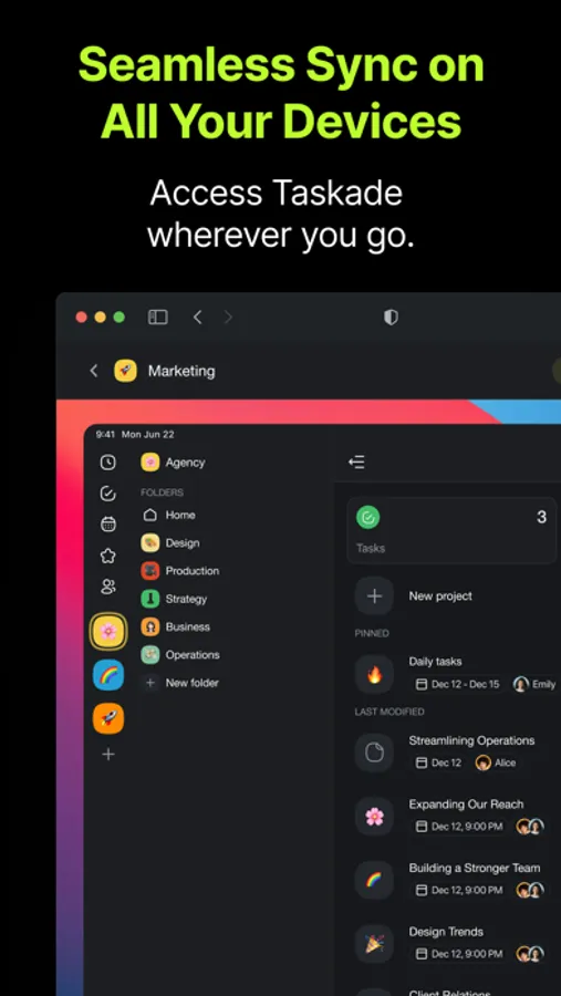 Taskade can be used by individuals or teams, at home or at work (or anywhere!). Automatic syncing means your data are always up to date on every device. Taskade gives your team superpowers!