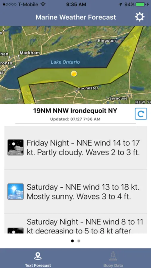 Simply tap anywhere on the map and view NOAA's spot specific point marine forecast.