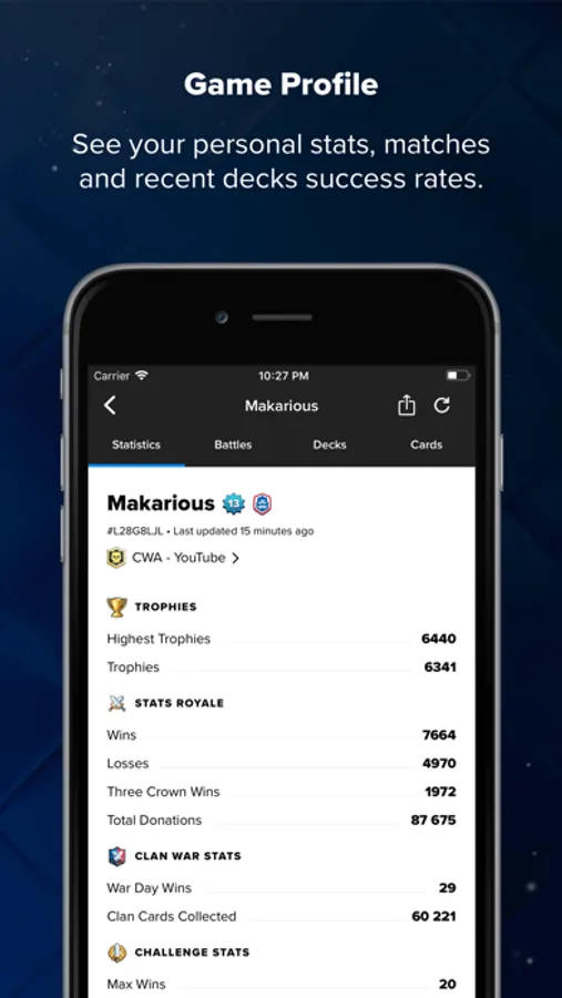 - See your win rates with all the decks you've used, in any game mode. (As long as you refresh your profile often!)