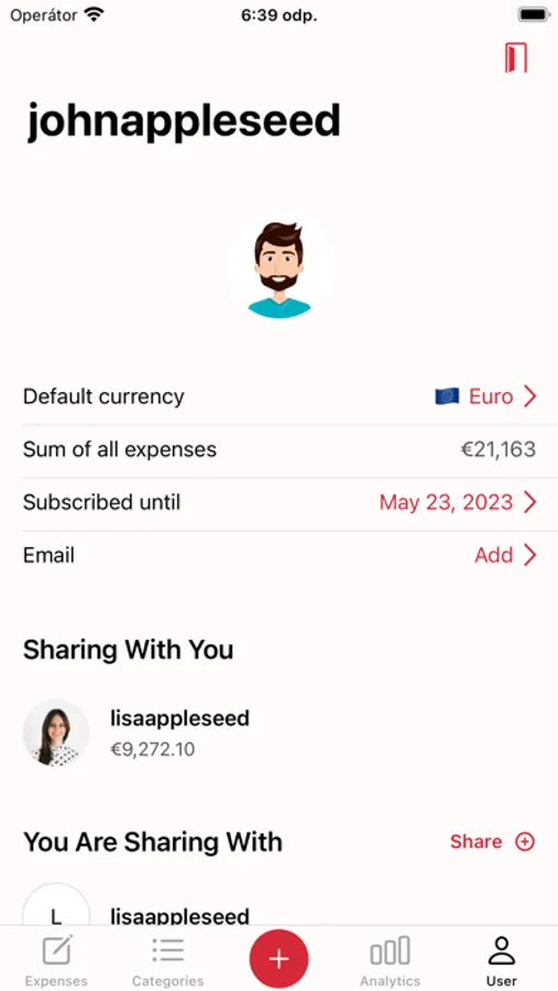 • Sharing with your partner or even whole family and get notifications with new expenses