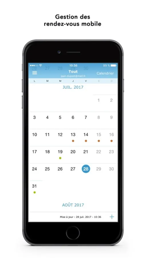 - Aperçu de tous les événements inscrits dans votre calendrier. Créer, modifier et enregistrer de nouveaux événements. Synchronisation automatique avec le calendrier de la messagerie web.