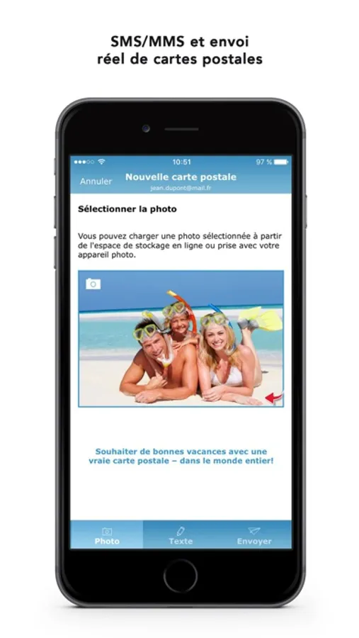 - Envoi dans le monde entier de vraies cartes postales. Envoyez un message personnel depuis votre lieu de vacances directement dans notre application