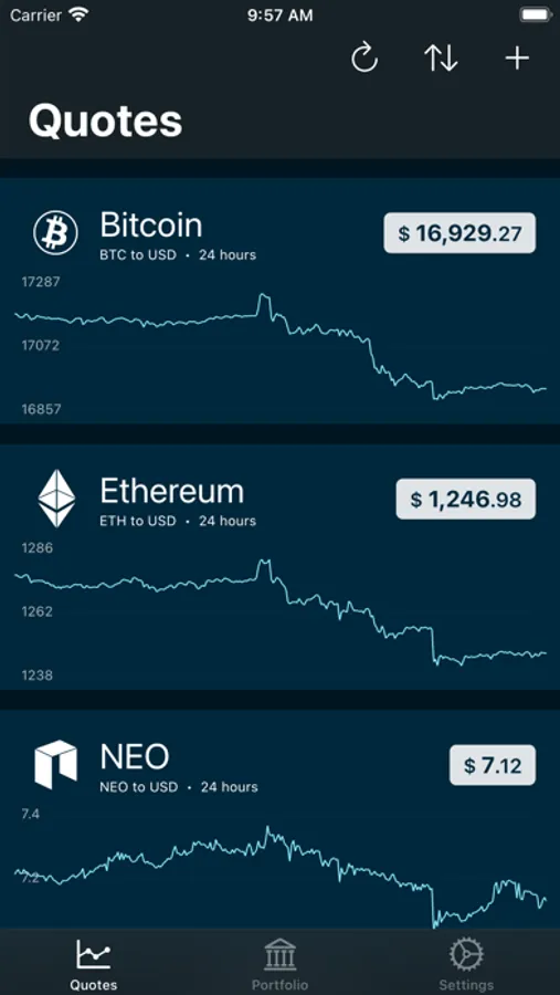 Mighty Market is a simple and elegant cryptocurrency price tracker that show you at a glance how the cryptocurrencies that you follow are doing.