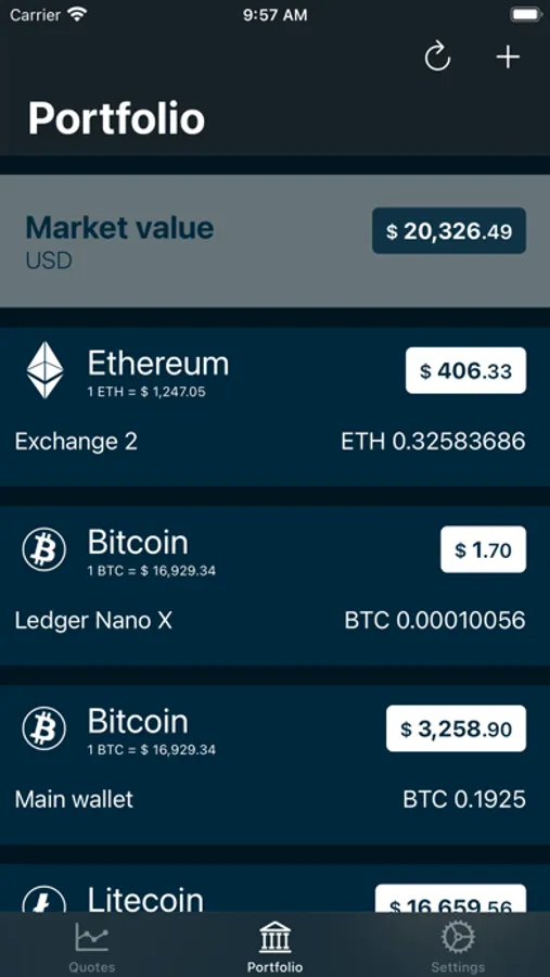 Keep a list all your wallets and balances in your portfolio so that you can see your total market value across all cryptocurrencies in one place.