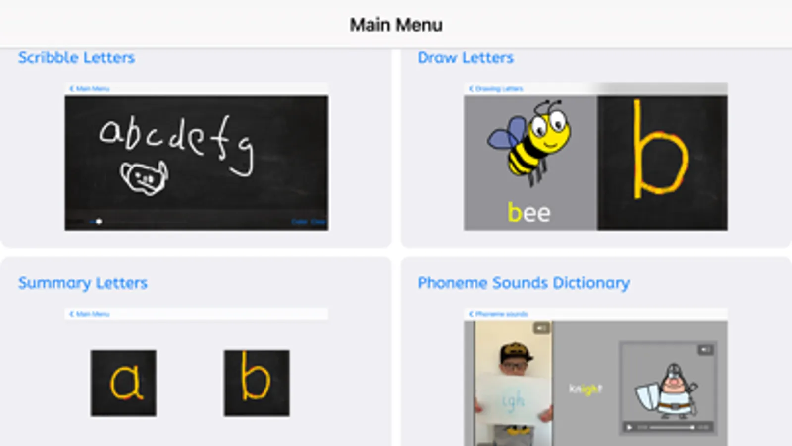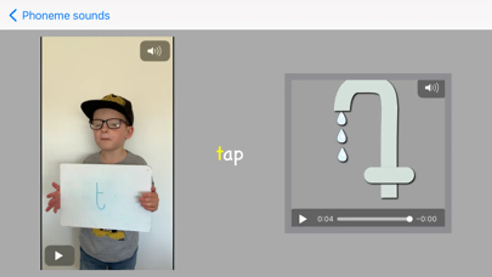 Phonemes by Gwimpy will introduce your child to these sounds with the assistance of a little helper who is also grappling to master them. The phoneme is pressed on the menu, and the sound is reproduced with this sound being included in a word which is then reinforced by a short morphing of the phoneme into an object representing the word. That is it!